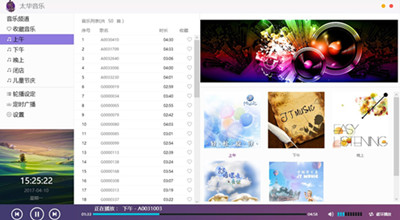 透过网络云端空间传送音乐内容送至客户端,定期进行音乐内容自动更新,并藉由后台信息随时提醒尚未更新之客户进行更新,支持个性化轮播设定,广播稿插播,定时播放,收藏喜爱音乐等贴心功能